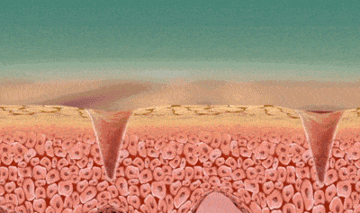 里:恢復(fù)內(nèi)部缺失的膠原纖維,使凹陷處膠原組織再生,實現(xiàn)皮膚平整;